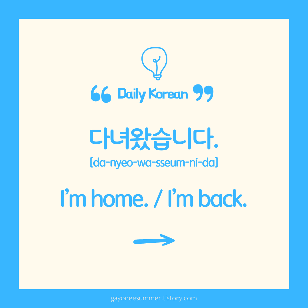 👉 Today’s expression: 다녀왔습니다 = I'm home. / I'm back. 👋