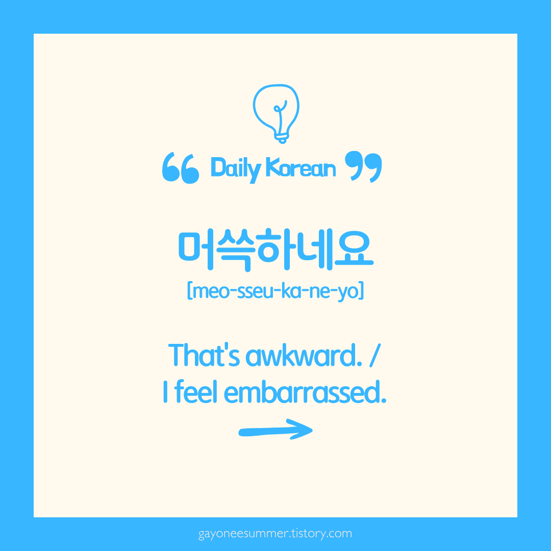 👉 Today’s expression: 머쓱하네요 = That's awkward. / I feel embarrassed. 😳